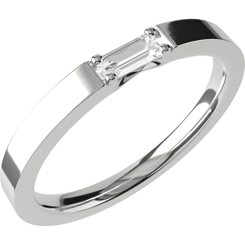 Med sin raka grundring sitter en baugetteslipad 0,10 carats diamant. En diamant med karaktär infattad i en stilrent utförande perfekt för den som vill ha något unikt men ändå diskret. Eterna 13 har en harmonisk form som passar lika bra på en maskulin som feminin hand och blir ett utmärkt val både som förlovningsringar, vigselring eller smyckesring.