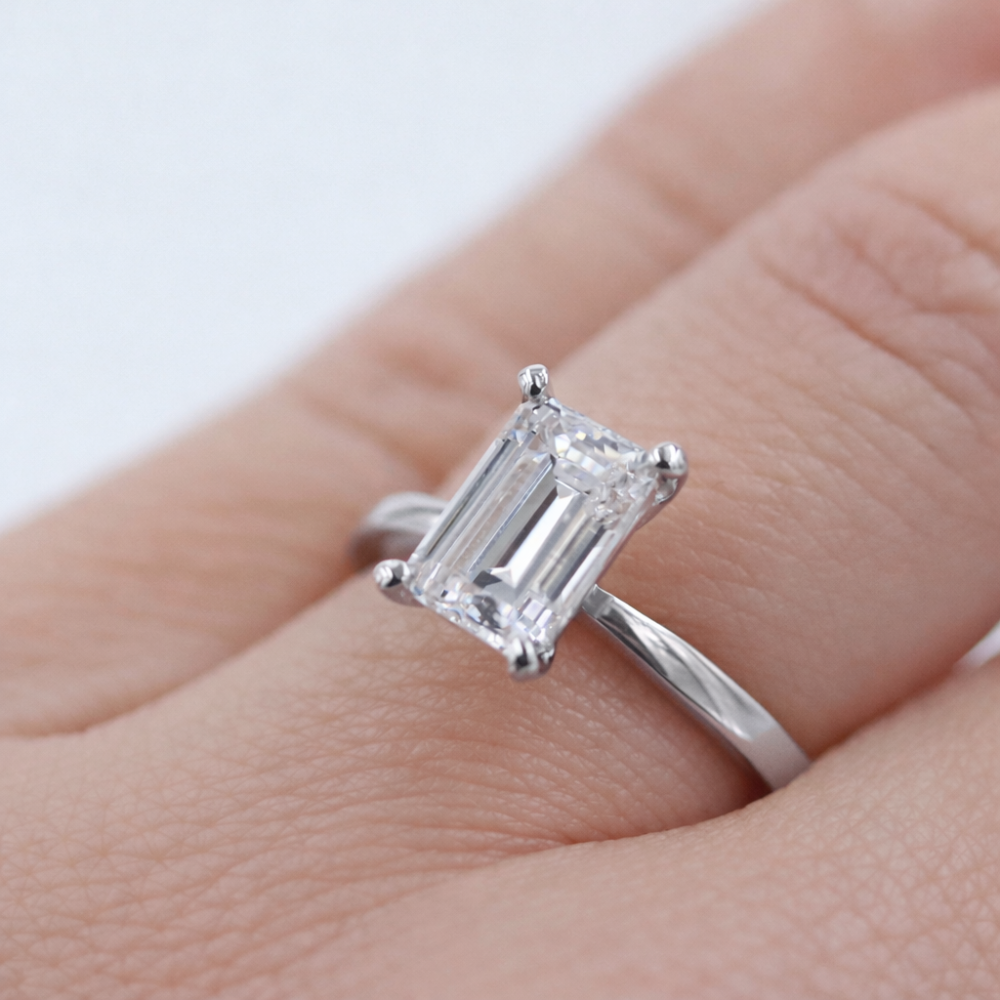 Närbild på North 2.00 smaragdslipad lab grown diamant i platina