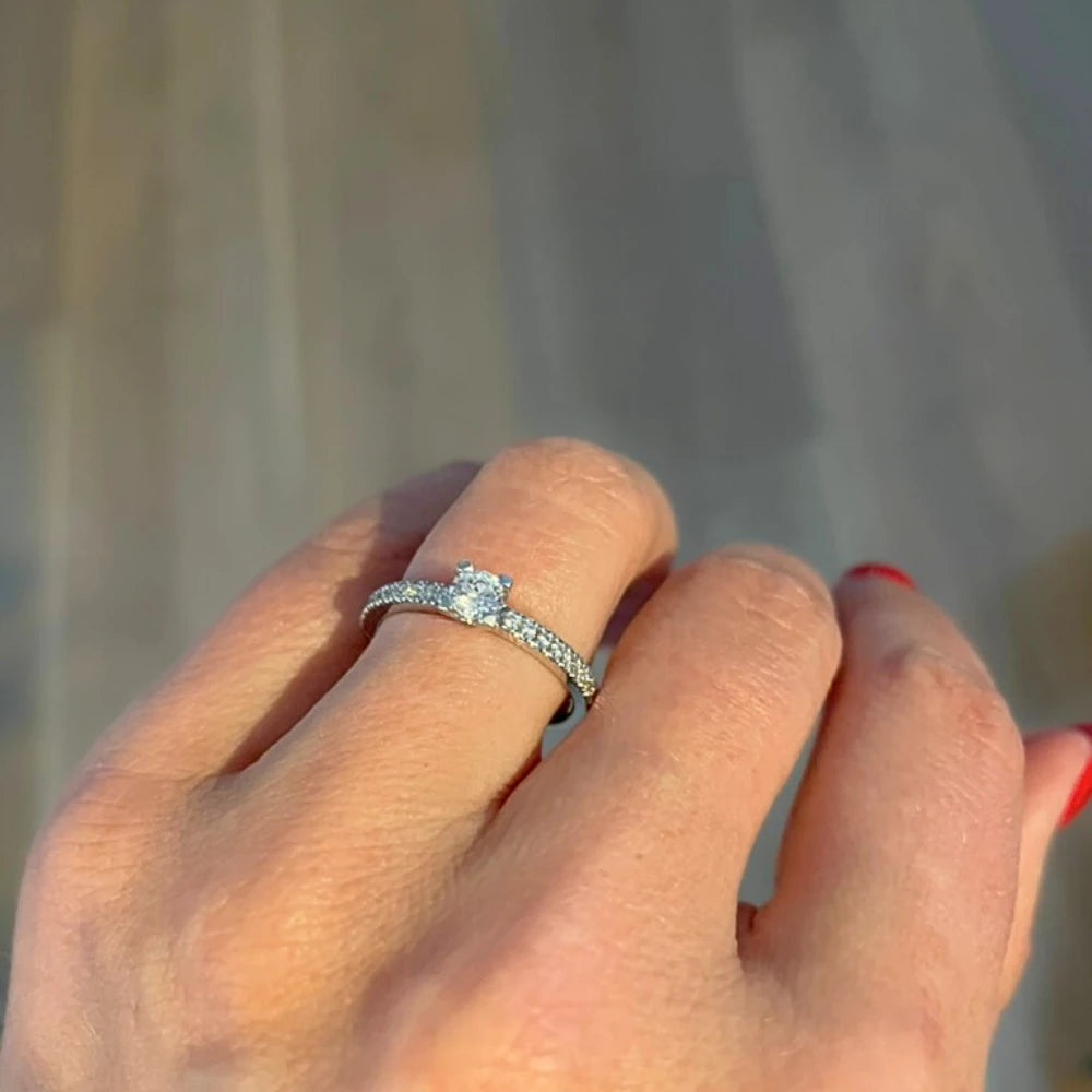 Tycker du om ringar med mycket stenar och söker efter en passande ring till din förlovningsring? Då rekommenderar vi att kika på North 017, en uppskattad solitärring med sidostenar. North 017 har en mittsten på 0,25 carat och sidostenarna är på 0,01 vardera, nio infattade på rad på var sida. Samtliga diamanter är lab-grown. Du kan även titta på North 019 då det är syskon till North 017 men med större stenar.