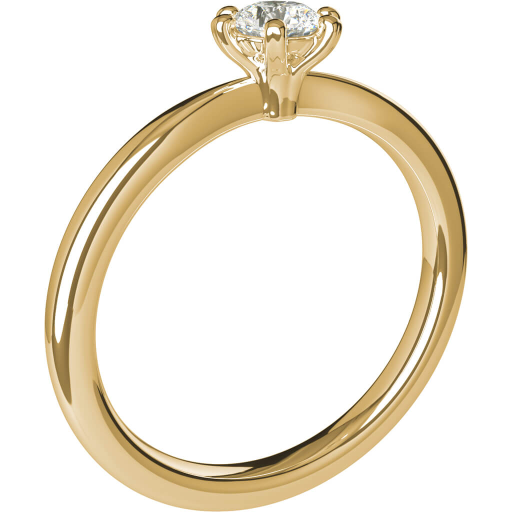 Ringens mjuka form och smakfulla midja riktar uppmärksamheten på den vackra diamanten som med sex klor omsluts med säkerhet samtidigt som de låter dess skimrande lyster stråla fritt.