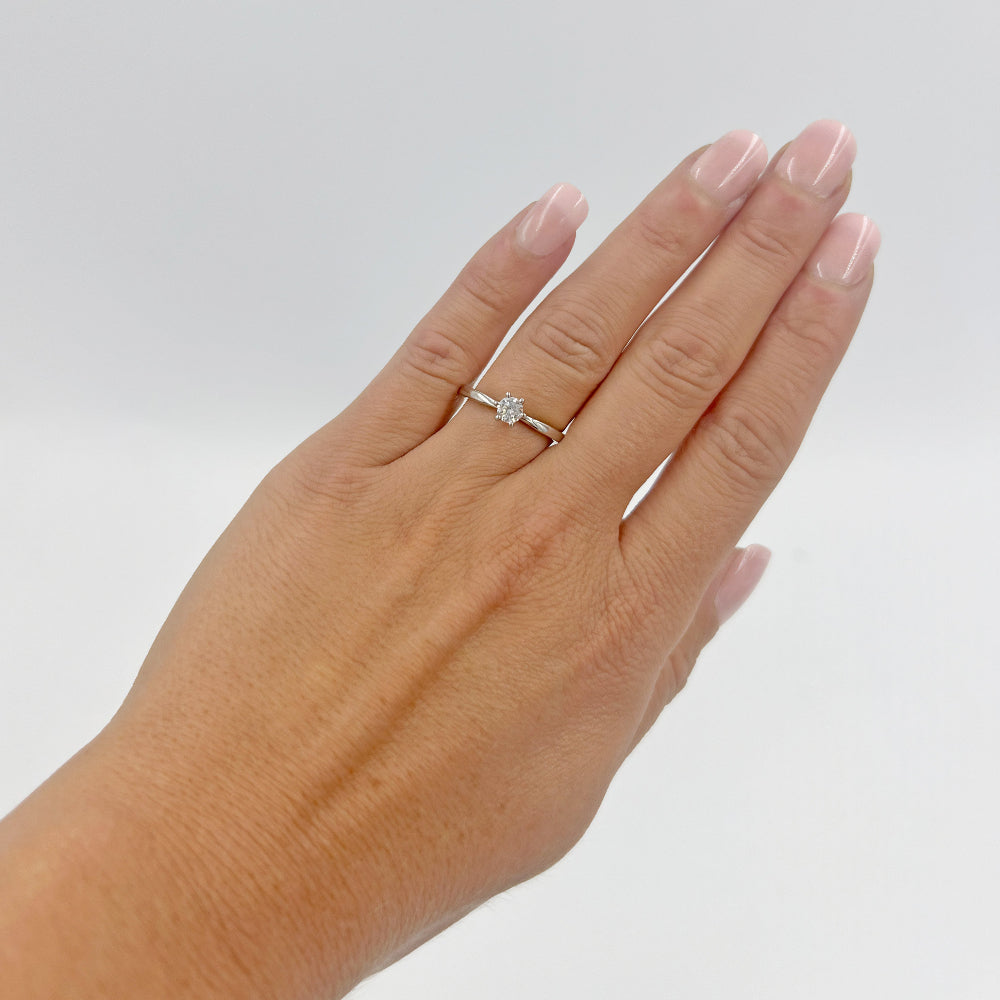I centrum glittrar en lab-grown diamant på 0,30 carat vars briljans framhävs av den vackra designen.
