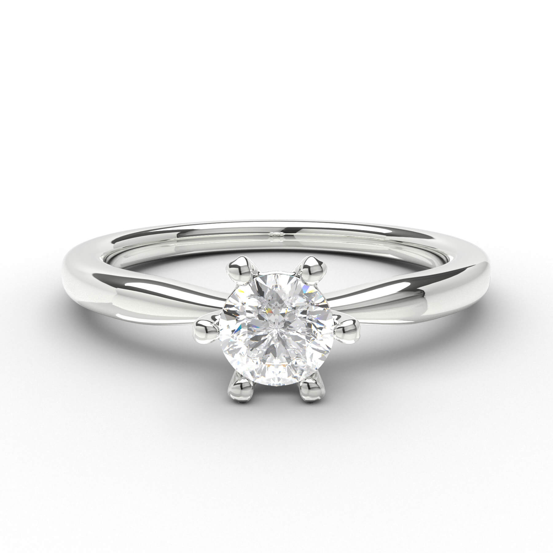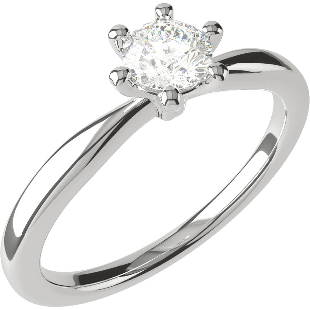 Ringens mjuka form och smakfulla midja riktar uppmärksamheten på den vackra diamanten som med sex klor omsluts med säkerhet samtidigt som de låter dess skimrande lyster stråla fritt.