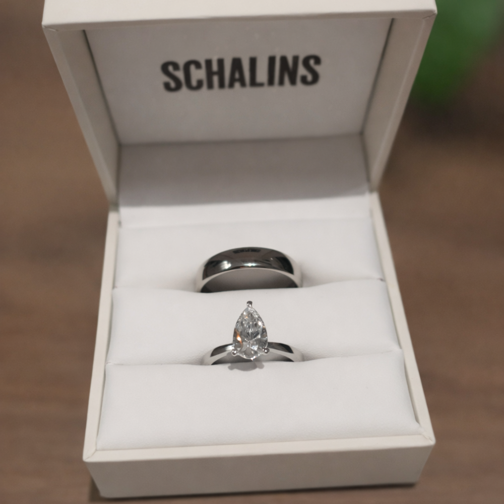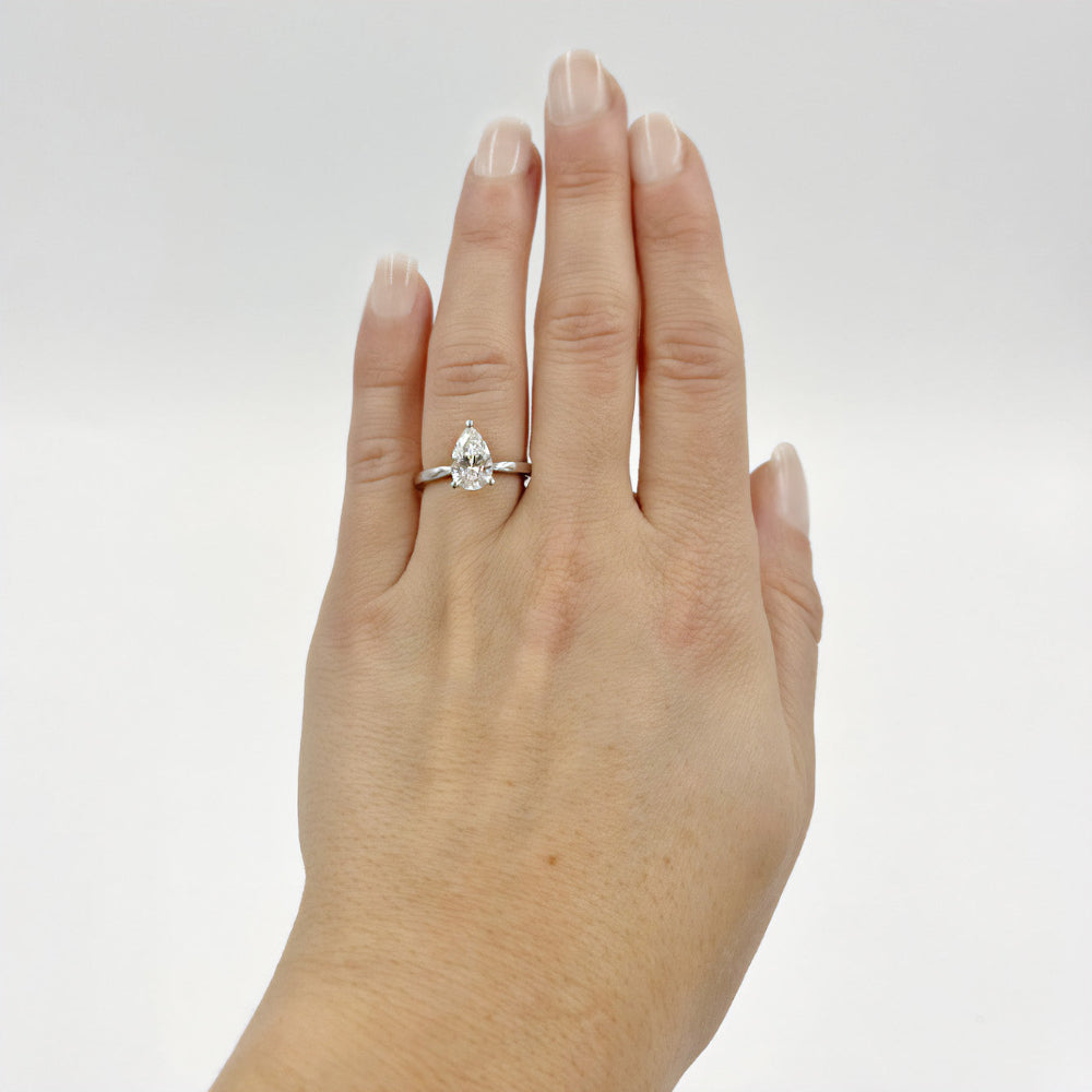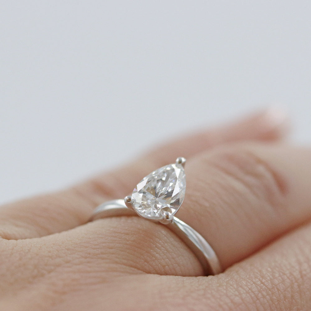 Droppformad solitärring med lab grown diamant – vigselring, förlovningsring & personlig lyx
