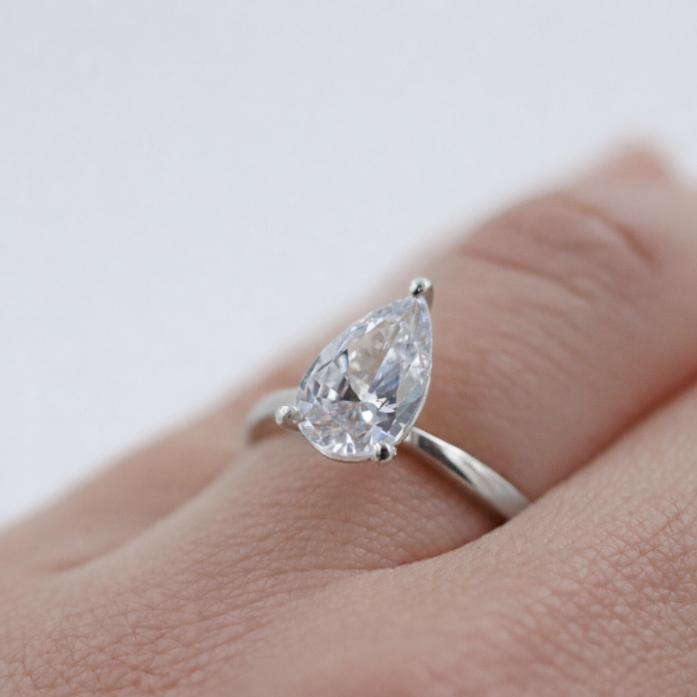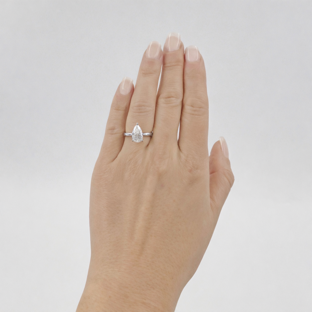 Droppformad solitärring med lab grown diamant – vigselring, förlovningsring & personlig lyx