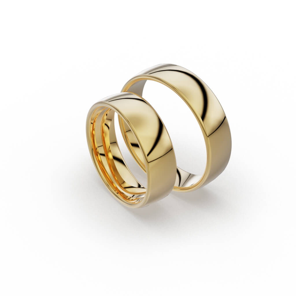 This plain 6 mm ring is available in various alloys of gold, exclusive platinum as well as palladium and silver. With its relatively straight profile and cupped inside, this ring is a popular choice for both weddings and engagements.