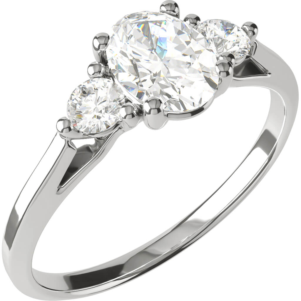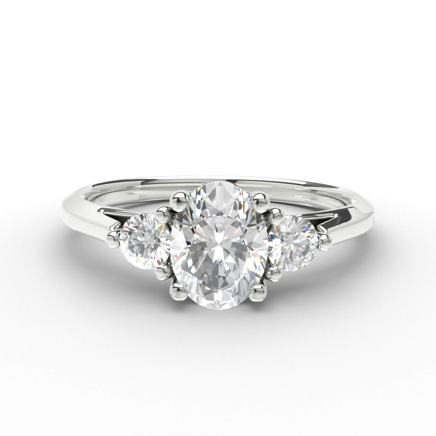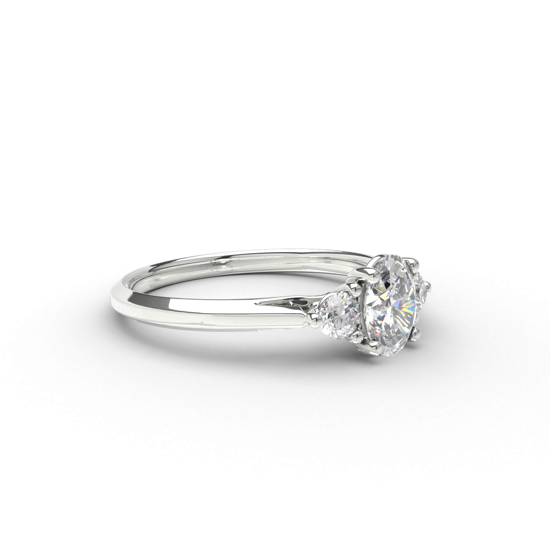 Eterna 20 is an elegant three-stone ring with an oval-cut diamond of 0.50 ct in the center, flanked by two brilliant-cut side stones of 0.07 ct each. The oval cut highlights the diamond's luster and gives a soft, elongated shape that creates a stylish yet eye-catching expression. A diamond ring that is just as beautiful as an engagement ring or a wedding ring.