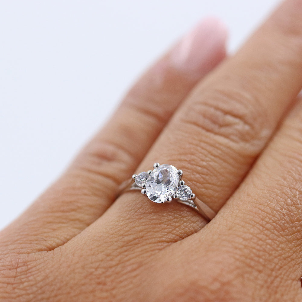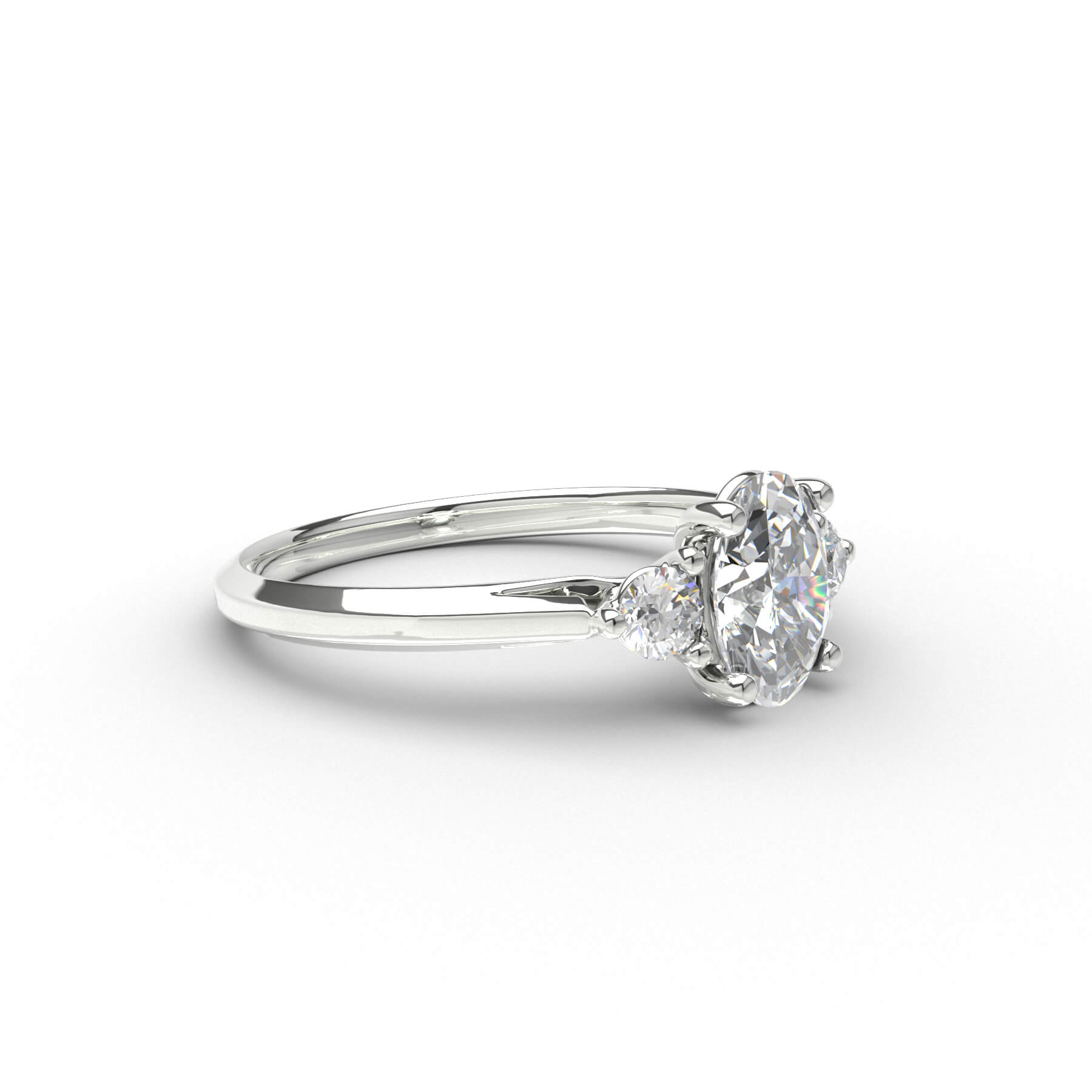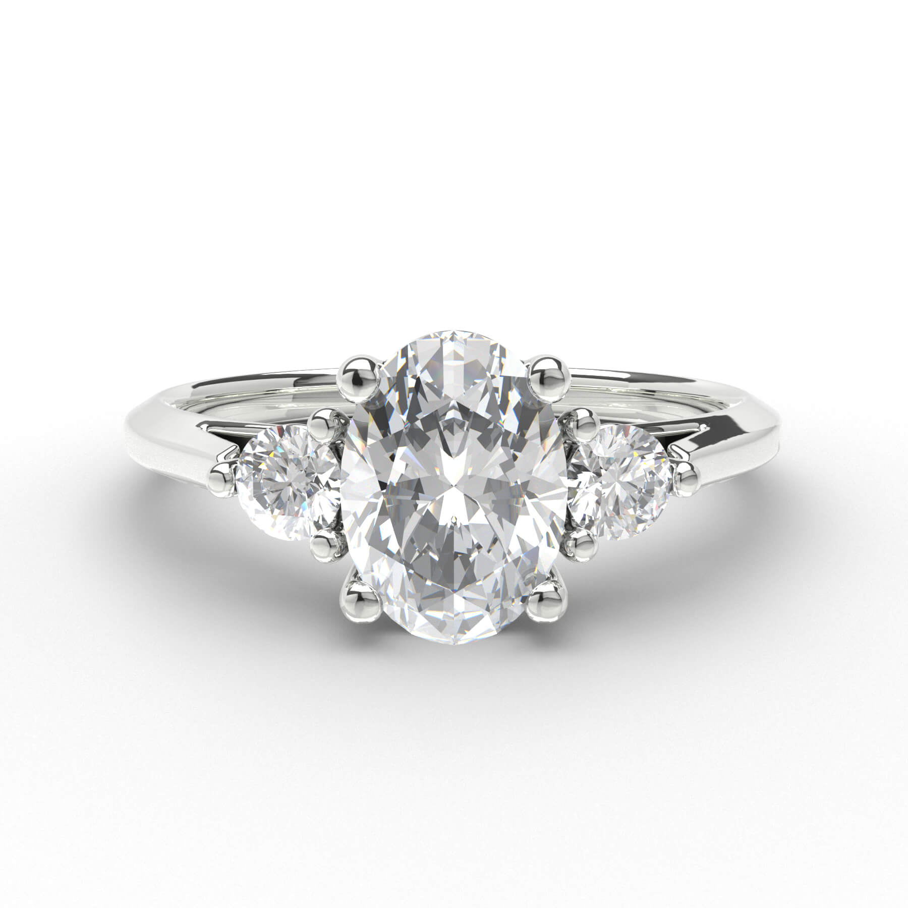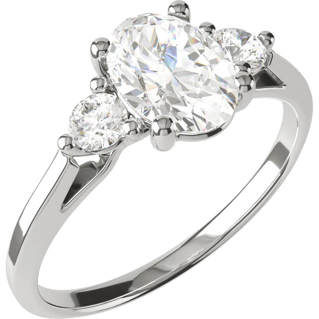 The Eterna collection offers three-stone rings with different center stone cuts – brilliant, oval and emerald – as well as three different sizes of the center diamond.