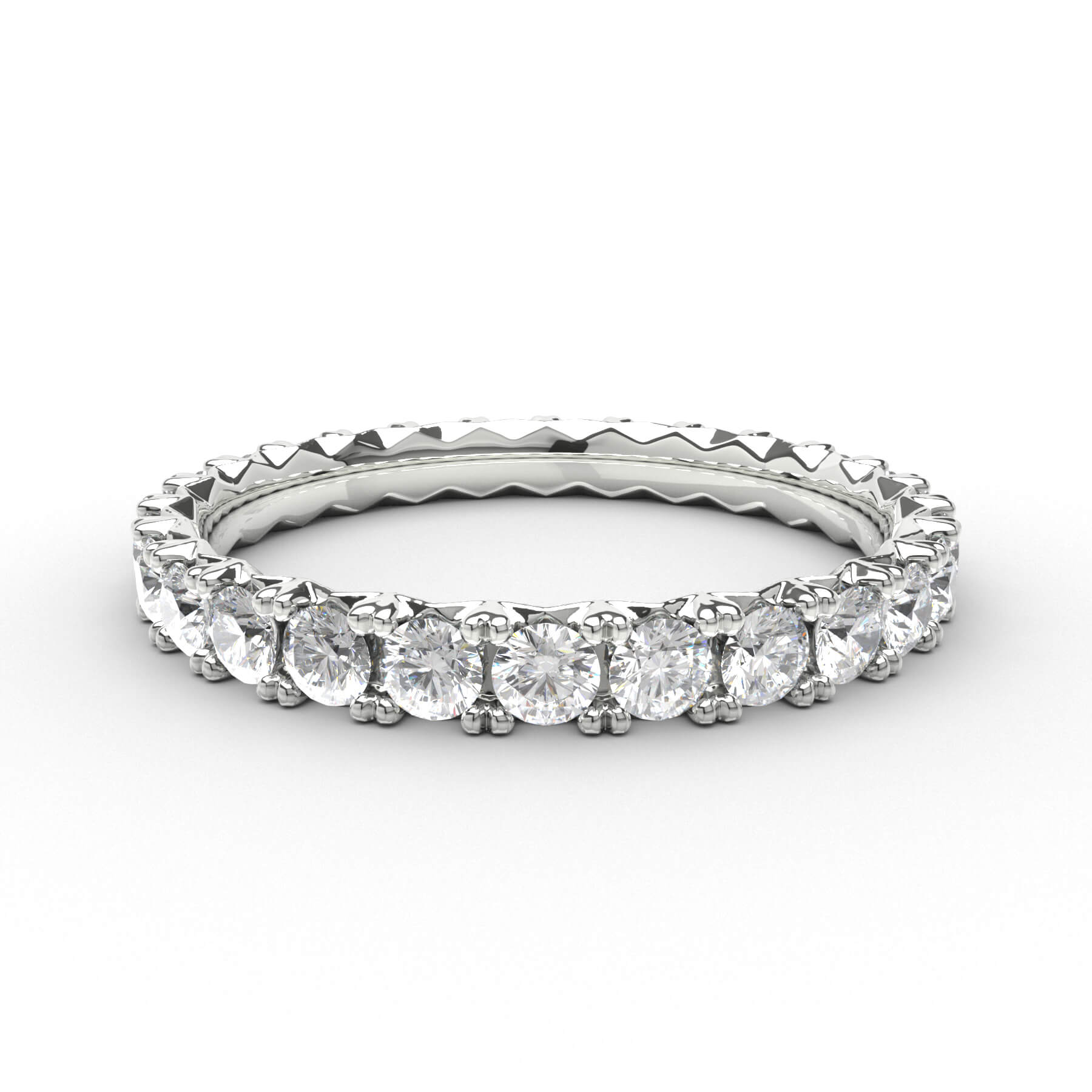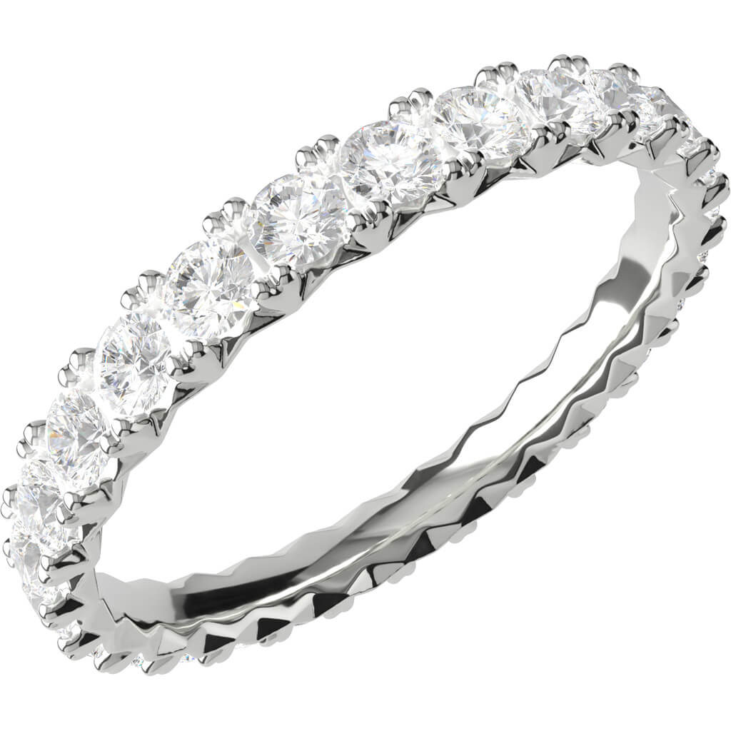 This elegant full wedding band is adorned to sparkle no matter how it turns on the finger. The diamonds sit close together, creating an uninterrupted circle of sparkling brilliance that gives a luxurious and sophisticated feel. The band is 2.5mm wide and has a slightly curved outside, the inside is also slightly curved for optimal comfort.