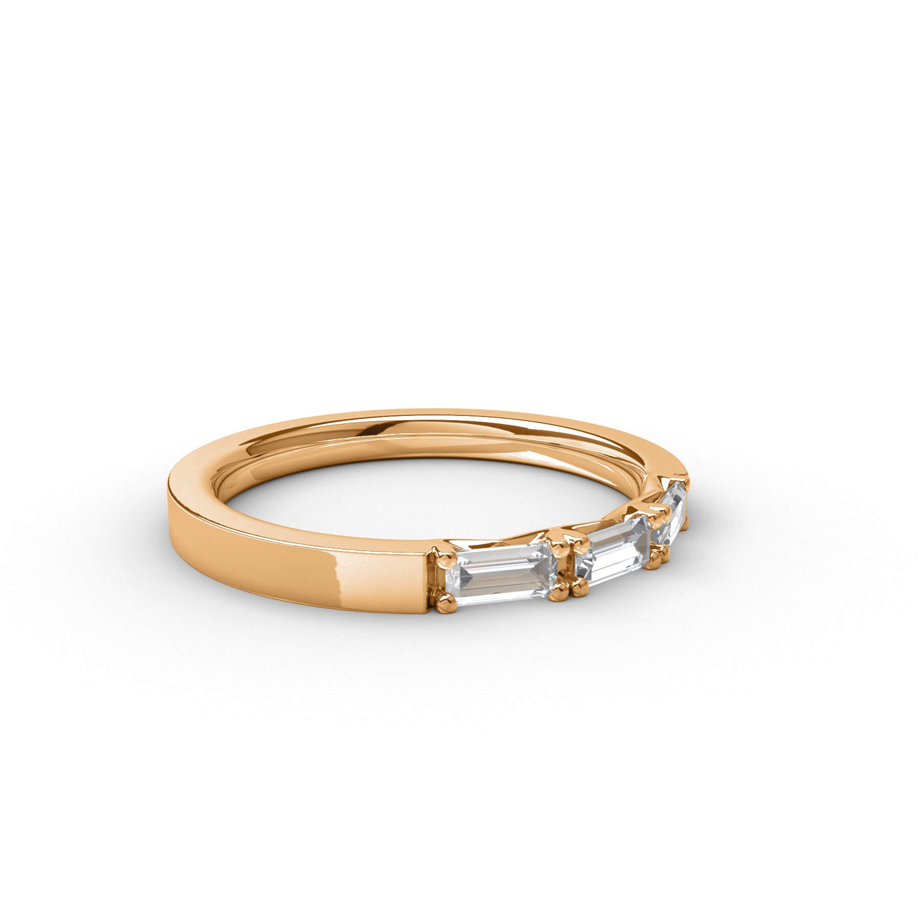 The three baguette-cut diamonds of 0.10ct each, which with their clean lines give a sparkling luster and an aesthetic appearance, make this ring a lucky choice for an engagement or as a jewelry ring for you because you are worthy of it.