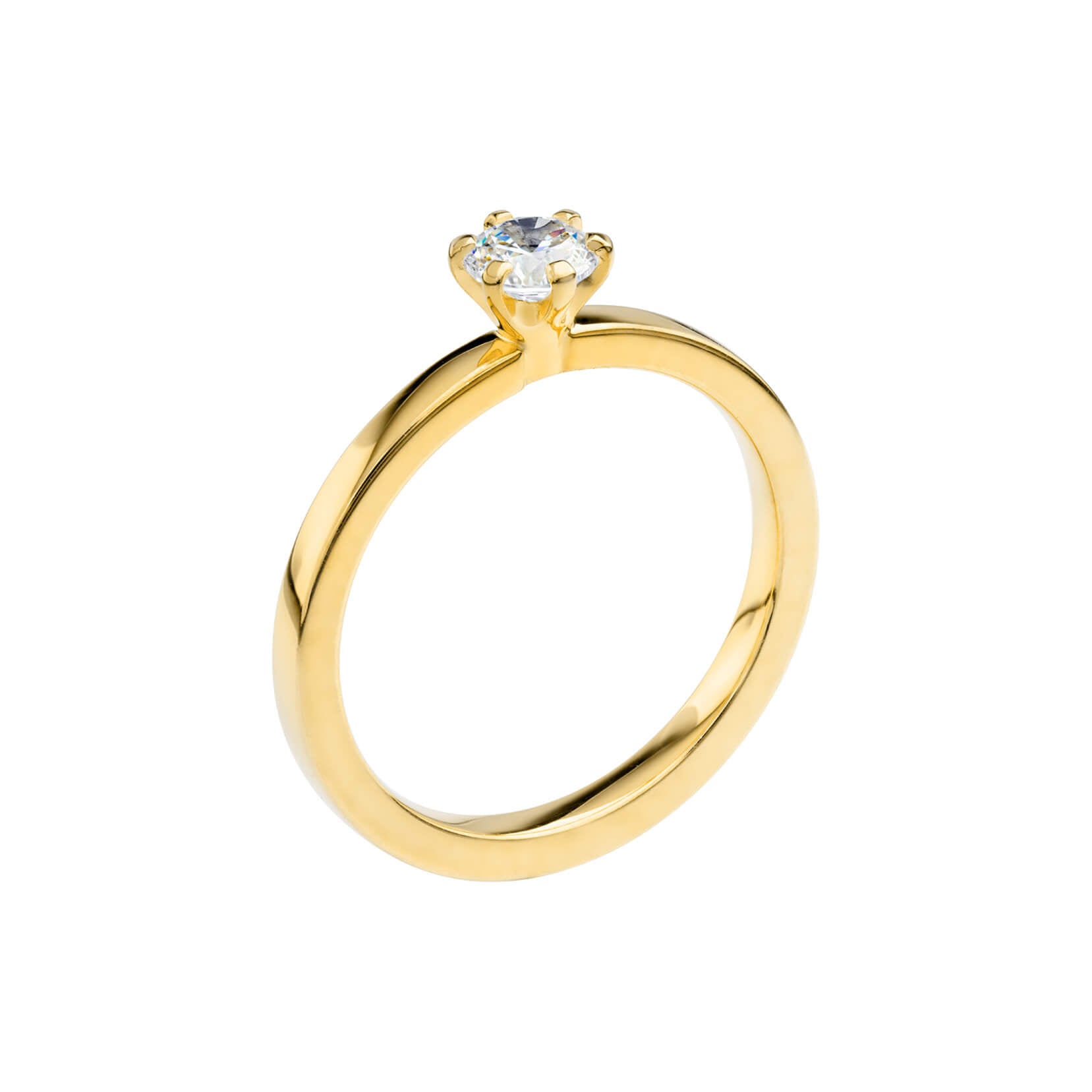 Love 01 is a classic and timeless solitaire ring for wedding or engagement. The 0.35 carat diamond is held firmly in place by six claws and the slightly rounded ring bar of only 2 mm in width allows the ring to take its place on your finger in an elegant way. This slightly smaller ring is suitable for those who appreciate simplicity and at the same time want a luxurious feeling with a beautifully sparkling diamond. The ring is, in all its simplicity, one of our and our customers' favorites. Match Love 01 with our alliance ring Love 09 from the same series for a magical combination that will sparkle wonderfully on your hand. Are you looking for a slightly larger diamond ring that also has side stones? Then Love 02 might be for you.
