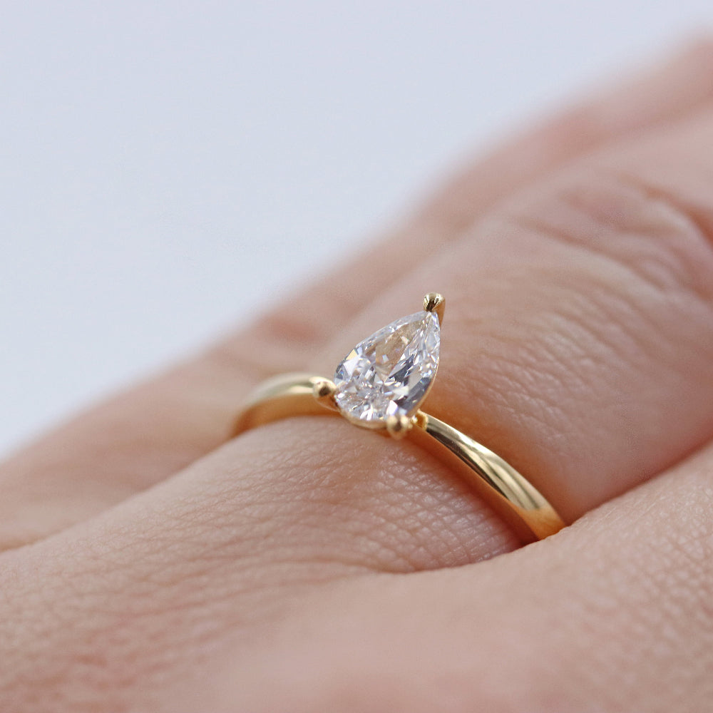 Droppformad solitärring med lab grown diamant – vigselring, förlovningsring & personlig lyx