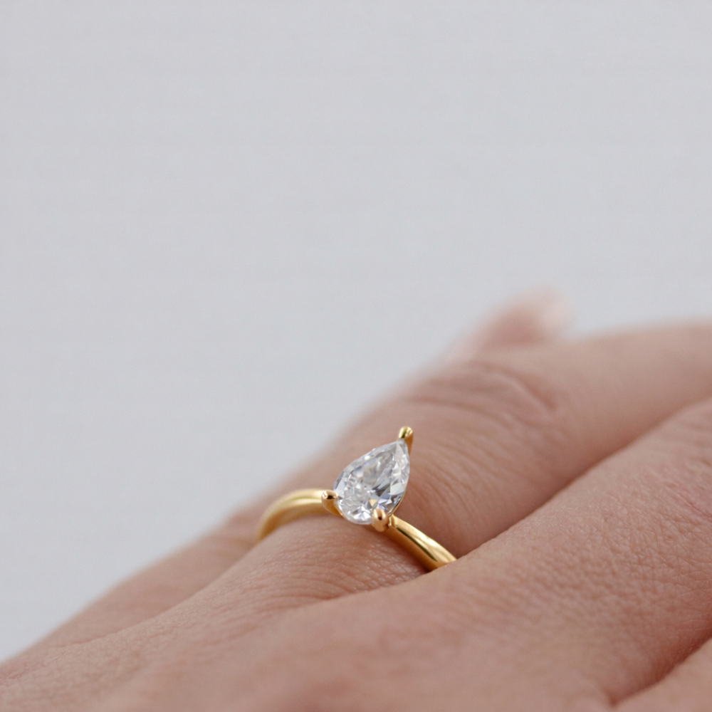 Teardrop-shaped solitaire ring with lab grown diamond – wedding ring, engagement ring & personal luxury