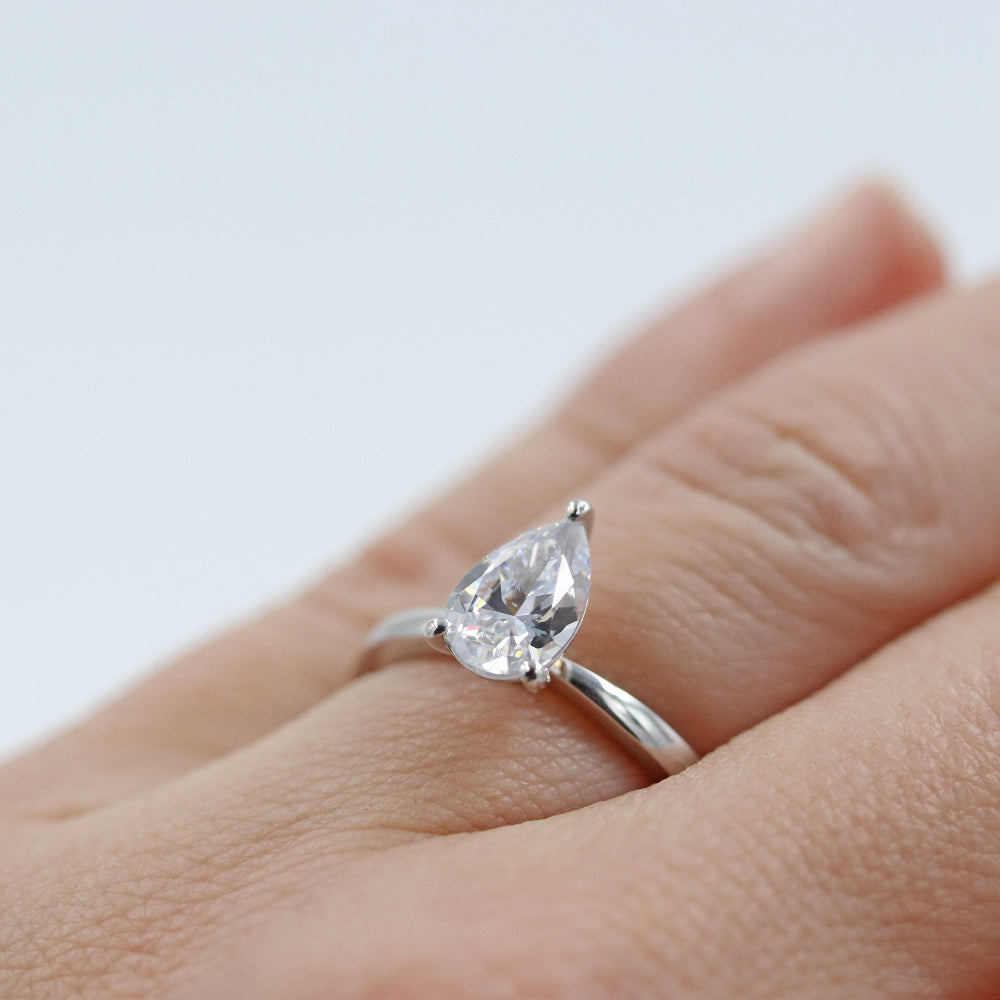Närbild på North 1.00 Pear cut Lab grown i platina