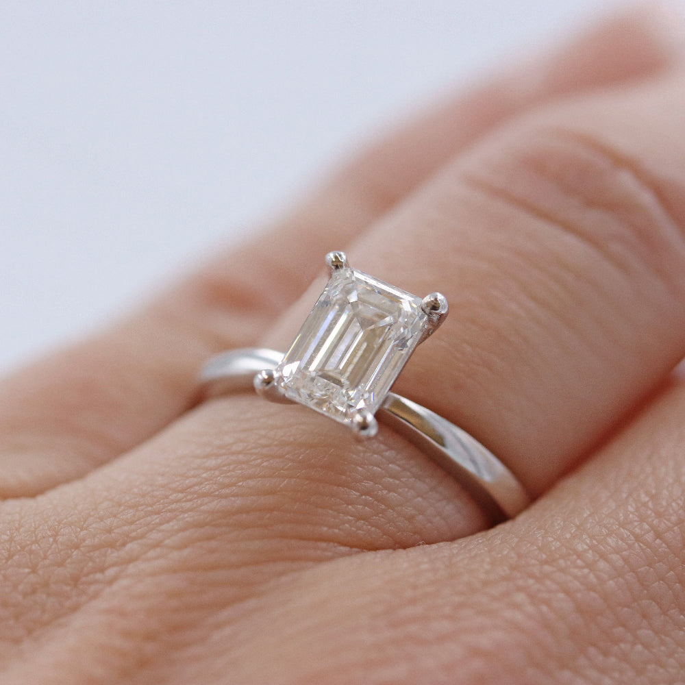 North052 - Lab Grown Emerald cut solitaire ring in platinum