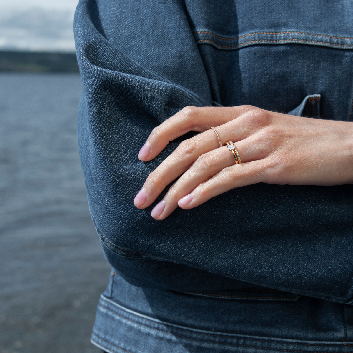 Schalins förståelse för att modern lyx ligger i enkelheten och renheten i designen återspeglas i "Aure". Denna kollektion är inte bara en hyllning till det estetiskt tilltalande utan också till hållbarhet och ansvar. Tillverkad från återvunnet guld och med konfliktfria diamanter, representerar varje ring i "Aure" ett miljömedvetet val utan att kompromissa med kvaliteten eller designen.
