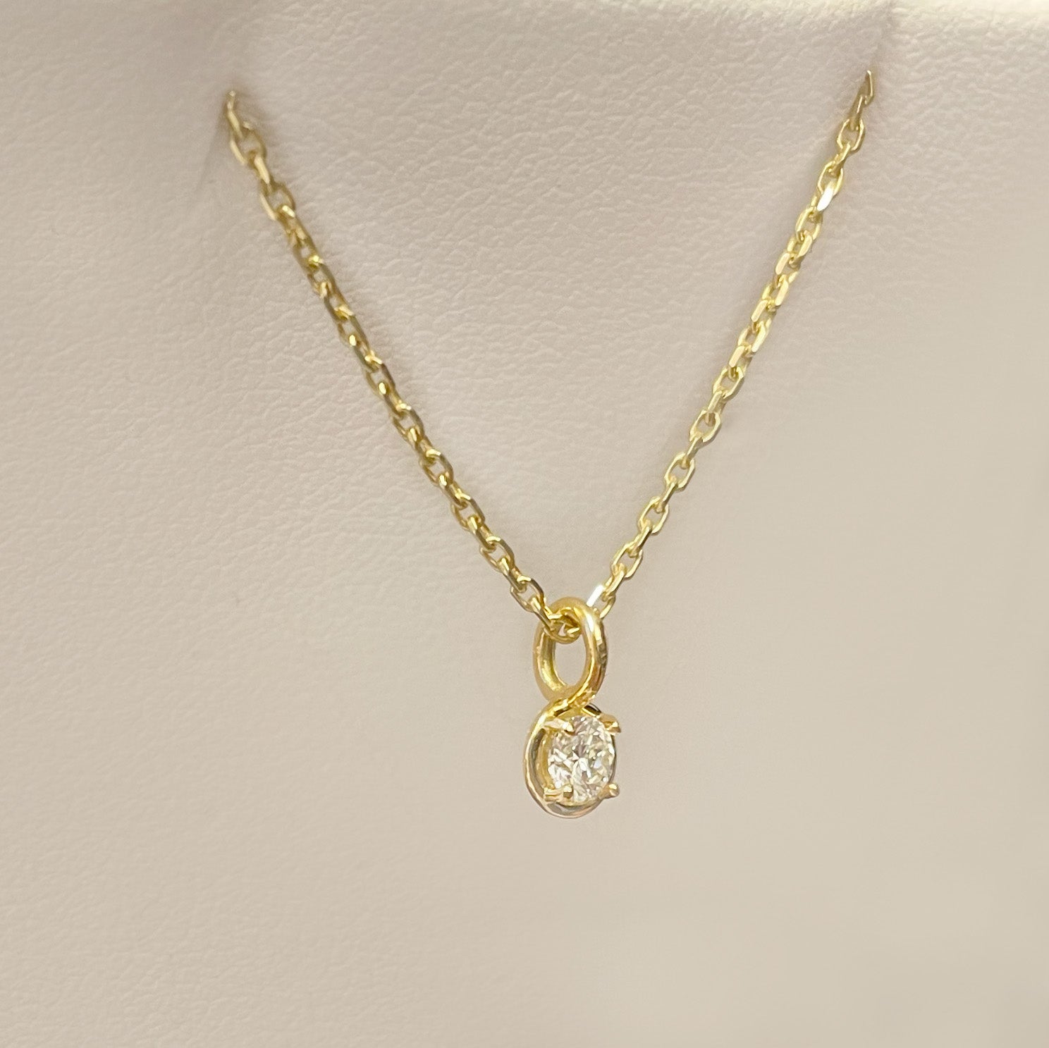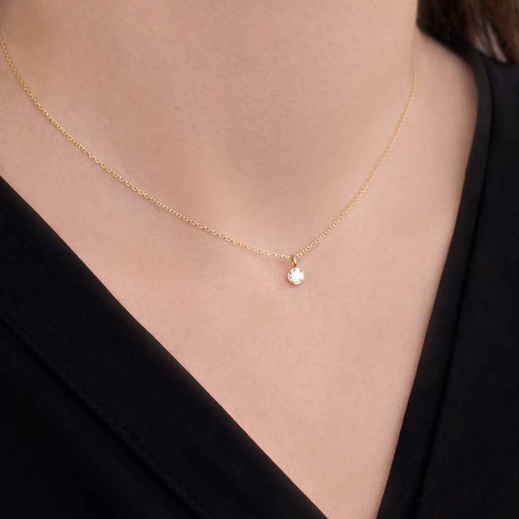 Ett stilrent diamanthänge med en briljantslipad diamant om 0,10 carat i kvalitet WVS. Diamanten är infattad i en gallery rail med fyra nätta klor, som både förstärker uttrycket och skyddar diamanten.