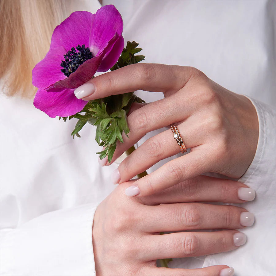 Varje ring är utformad för att kunna bäras enskilt eller i kombination med andra ringar i samma kollektion, vilket gör att du kan skapa ett personligt uttryck som är så unikt som du själv.