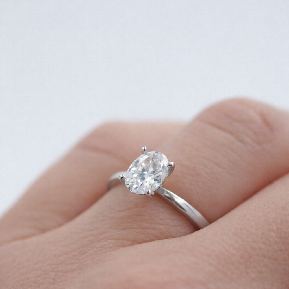 Oval solitärring med lab grown diamant – förlovningsring, vigselring & personlig lyx